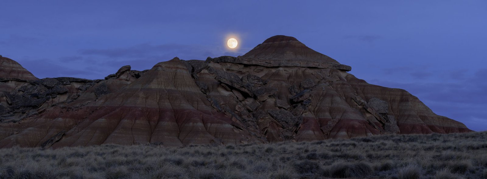 Under the rising moon, the desert stands timeless, the rocks bearing witness to the night.