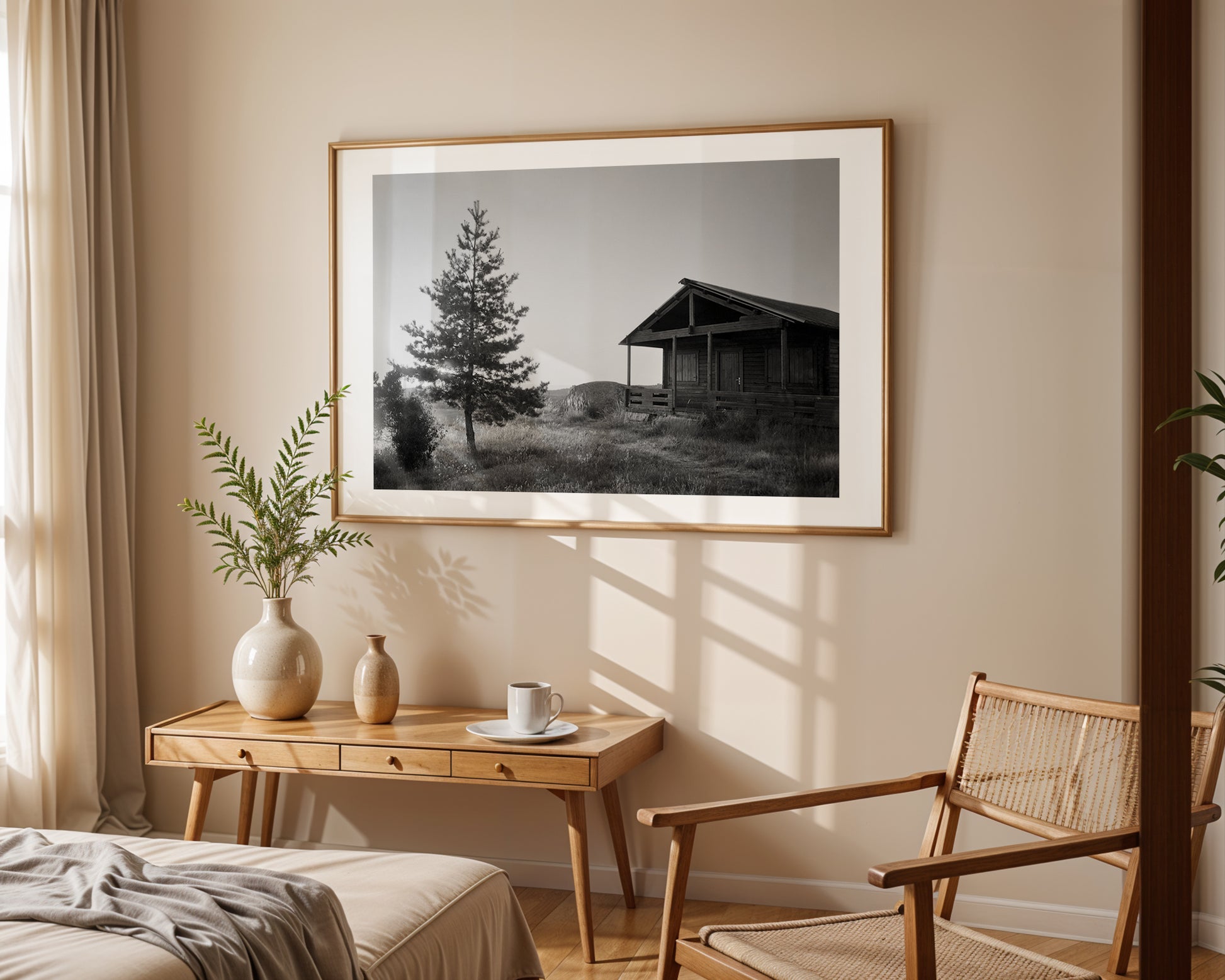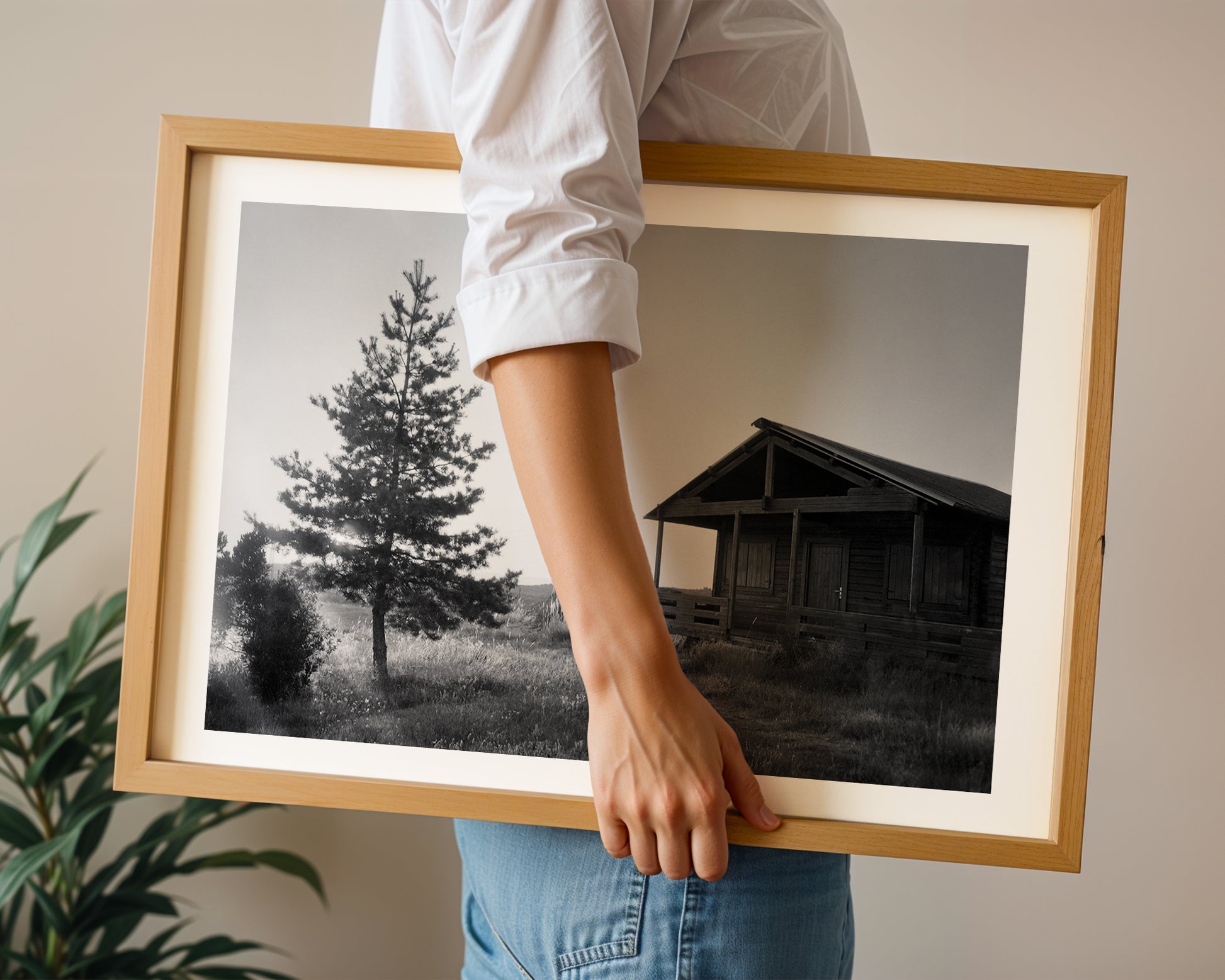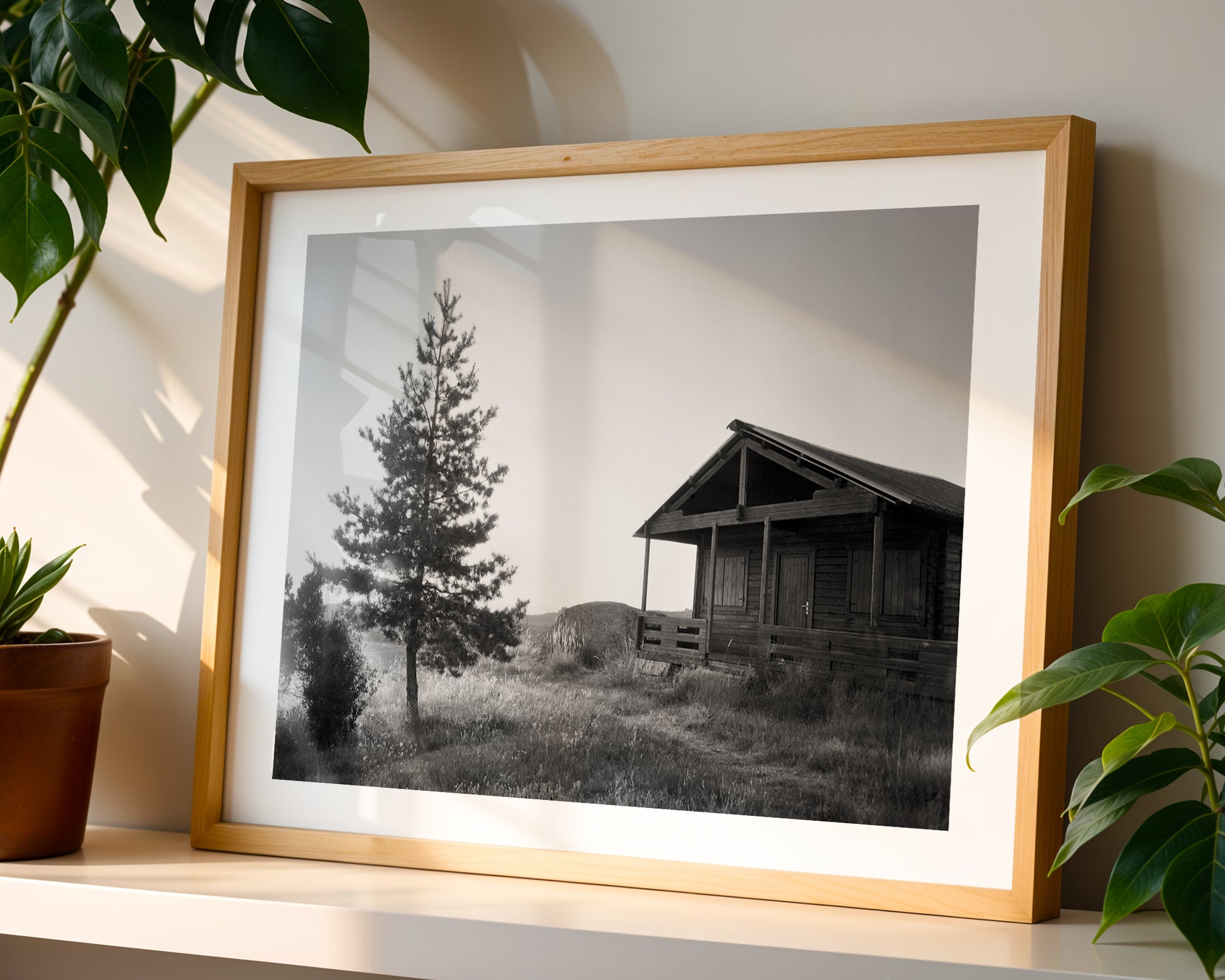 Cabin in the woods - Serene Black & White Print on Fine Art Paper